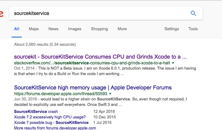 Original article written by LogStudio:R0uter's Blog » SourceKitService take up a lot of memory and CPU solutions