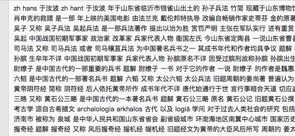import gensim input_file = "./article/zhwiki-latest-pages-articles.xml.bz2" f = open('./article/zhwiki.txt',encoding='utf8',mode='w') wiki = gensim.corpora.WikiCorpus(input_file, lemmatize=False, dictionary={}) for text in wiki.get_texts(): str_line = ' '.join(text) f.write(str_line+'\n') |