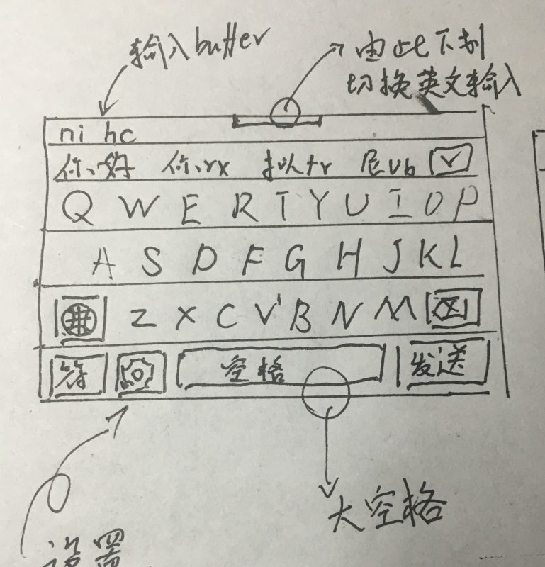 After several iterations,I get a third-party keyboard architecture ios,Then start your own from scratch can achieve a typing input methods,For example, this: