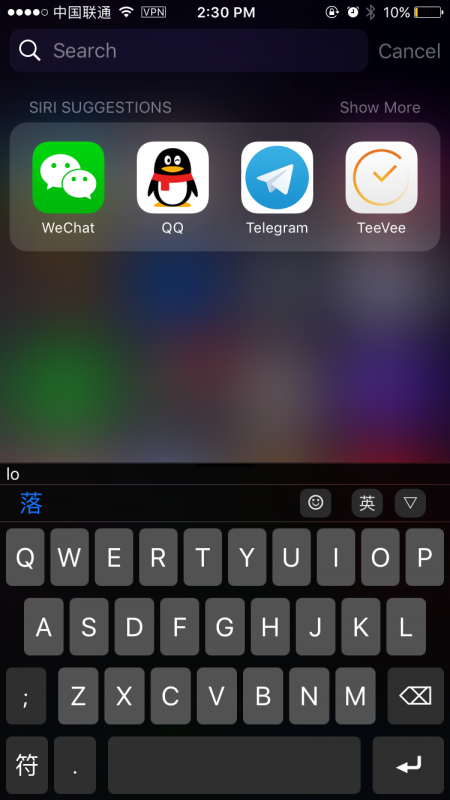 Since I also have an iPad,So from the very beginning,Pocketed input method is a universal app iPhone iPad,It may be because the software I use are those relatively sophisticated (domestic software rare),They are able to meet ios system features to enhance the experience consistency,For example the fit of the black and white system,Few people know - after all, if Apple did not put it on the table to move,But you can see the system,If you search the Notification Center,Then the keyboard is black and translucent。so, After two iterations,Not translucent,But still some black,For example, this: