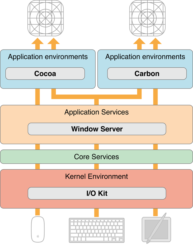 - Cocoa / AppKit - which is the highest level,We also used the default level NSEvent ;