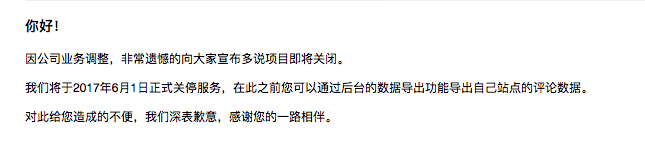 本文由 落格博客 原創撰寫:落格博客 » “重要通知: 多說即將關閉”