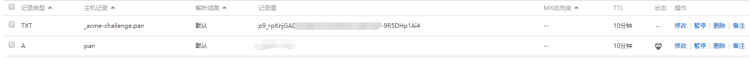 然後得到這張圖,你需要去你的域名運營商的控制面板裡,給你的域名加上你的二級域名,如果沒有二級域名,那就直接添加一個txt類型的記錄,主機記錄填寫Domain裡的值,然後把TXT value裡的值寫到記錄值裡。