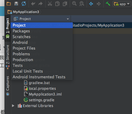 自動下載安裝後,as會為你配置好一切,接下來在你工程的左上角把項目選為 “Project”: