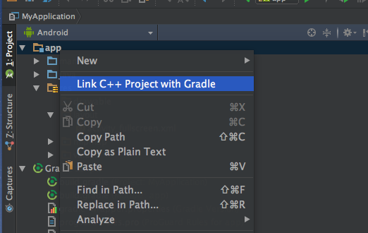 然後在 應用程式/主要 上點擊鼠標右鍵,新建 JNI 目錄: